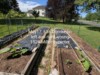 Two 656 Domke plants transplanted and growing nicely in spite of unusually cool, cloudy and rainy spring. Drip irrigation hose installed on right side bed, not in left side bed (which will probably become a secondary plant).