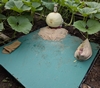The pumpkin was in a pretty tight crotch of the main and a secondary so I've been moving those two vines out of the way, a little bit each day. Since the soil in the bed is mounded up towards the middle of the bed where the main vine is running, I was able to dig out from under the pumpkin and then temporarily support it. I plan to reduce the support underneath gradually as the pumpkin grows so its base will eventually be below the level of the vine. Saw first adult squash vine borer in the patch today so I mixed up some malathion and lightly sprayed the under carriage of the plants (vines, stems, soil). Also gave each plant a low dose of imidacloprid at main roots and along buried stem.