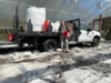Cleo may be trying to figure out how to get in to my patch, but I'm trying to figure out how to get them (the pumpkins) out! Here is my process: 1. Lift the pumpkin with a tripod & then slide a piece of plywood underneath the pumpkin. 2. Put a super-pallet on the piece of plywood. 3. Use a pallet jack & about 4 people to move the pumpkin on a road of overlapping sheets of plywood to the giant, custom lift gate on my F550 12' flatbed pumpkin hauler. 4. Hope that the liftgate can lift the pumpkin!