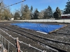 This morning I took advantage of 24 degree temperatures to cover the starting area for my outdoor patch. It is much more enjoyable to walk on top of frozen soil than to slog around in 6 inch deep muck, which is what it would have been if I had tried to do this when it was not frozen. Covering it now will help it become dry for when it comes time to amend & build hoop houses.