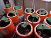 Here you can see the cables attached to a 4'x7' piece of wire fencing. I will start two plants side-by-side. I'll keep the better of the two & will cull the other. I put these plastic jack-o-lanterns in the spots where the seedlings will be planted, just as a way to keep it from filling up with soil that I will have to remove later. For some reason we have lots of these plastic jack-o-lanterns.