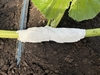 Three days ago I noticed that Hope's stem was starting to pull away from the vine ever so slightly. This morning it became clear that the growth of the pumpkin was starting to pull the stem away from the vine. Instead of needing to be pulled away from the vine because the shoulders were growing back into the vines, it appeared that the pumpkin needed to be pushed back toward the vine. This made no sense to me so I called Travis to see if he had any insight. Of course he did.