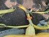 Of the 8 pumpkins I set on my 2069 Stelts about a month ago, only 2 are still living. 1 split & 5 others aborted like this one. Looks like the experiment of growing a bunch of pumpkins on one plant won't happen this year.