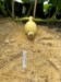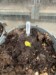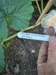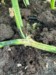 This should answer burying the tendril and how we do it. Check out the root that's desperate to get down into the soil, and it will. It's absolutely imperative that you get your vines covered as soon as possible because once that white dot on the top sees too much light it will switch off.
