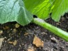 Rather annoyingly the main vine on one of the Wolfs slipped back into a hollow from it's two supporting bamboos. It's cracked about on third of the way through. It's not the greatest of plants as it's missing lots of secondaries but I did pollinated a nice pumpkin three leaves in front of the crack this morning.