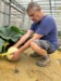 This is the one of the 1727 Jacobus plants. I have just realised that I didn't actually explain why we put the venting temperature up. So, after many hours of research we dug up from experiments growing cucumbers ideal conditions for cell expansion and cell division. We obviously had to take this information with a pinch of salt but it was really interesting. The experiments found that for the first 10 days after pollination the cucumbers went through cell division and cell expansion. Then for a further 18 days they went through cell expansion only. So, what to do? Well our thoughts are to keep the plants in a �happy place� and we felt that the plants needed the temperatures in my previous posts. It's all a bit touchy feely but we know it's working. Please, if there's something in my diary that's not explained just ask, Stuart and I prefer to have no secrets as pumpkin growing is hard enough as it is.