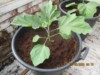 Aubergines planted into 90l pots filled with coir in old greenhouse.