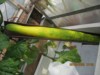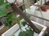 Good long Cucumber growing but to low down, placed guttering under to try growing in at an angle giving it more room to grow.