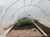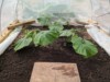 Took the hoops off yesterday as the secondaries had hit the sides and the main vine had reached the end. Unfortunately it is now cool and overcast (perfectly poor timing after weeks and weeks of nice sunny weather). This makeshift wind block will have to do for now.