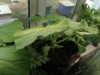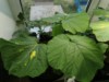 Today there was a heavy downpour and, unfortunately, hail flew for ten minutes. The size of some hailstones reached up to one and a half centimeters. This is what my pumpkin looks like now. Watermelons were also affected. Despite the fact that they were covered, there were potholes on the fruits. I'm not talking about the leaves anymore