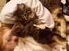 Kittens: 2 black & 2 gray. names: Doggy(Brandon chose for cool black face with white around eyes one),Meow-e(Luke chose for black face one), Flower Pot(Susan chose for gray & white face one), and T-Rex(Joel "Fred"ric chose for gray face one).