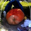 Milk jug next to giant pumpkin