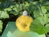 Three of my four plants have had successful pollinations. These pumpkins range in age from 20 down to 8 days. Until today, the only plant without a growing pumpkin is the 2214 Jutras. This flower was pollinated this morning. Fingers crossed