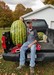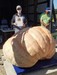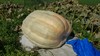 Amazing pumpkin to grow - first one I ever hit 50# a day on. Went through the effort to tent the pumpkin, and then the entire plant in preparation for the mid-September frosts. Unfortunately when I was gone for the KY weighoff, Amelia accidentally pointed the little heater directly at the fruit. When I checked it when I got back, it was cooked. You can see the two spots in this pic from the day I picked it. They were cooked / dehydrated enough to sink in. By the time I weighed it today, the fungus had started to set in. Between stopping watering, the cold September, and picking early, it probably would have normally been about 50 pounds heavier.