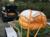 1385 is just a big blob of a pumpkin. Gains down to 16# per day for last two days but who knows for sure. Tough to measure this one. Trying to grow over blossom so may need to cut it off which is nerve racking this late in the game. See next pic.