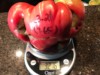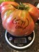On to the scale she goes. I�m pleased with that one. It�s a good reminder to not give up. I had a 3 pound tomato on that plant early on. I�m glad I let the late season mega grow out.