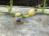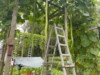 Here is the 149 Jutras long gourd stretching out on the trellis. She is 3.5 feet long today.
