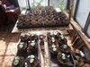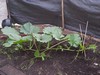 Tomato Row: left to right. 3.95 Shenoha (3rd generation 5.58 Timm x self), 4.19 Montgomery (5.07 Boudyo x self), 5.03 Boudyo, 6.01 Boudyo, 6.57 Boudyo, 6.83 Boudyo, 5.50 Johnston/Butler (5.58 Timm x self) All plants survived pounding rains and luckily no hail. Tables were used as add hade a cclimators and weather protection early on but plants have outgrown them and now I can put them away.