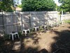 New digs for the 1546 and 1092 plants with 2 sections of tall silt fence with gaps for wind flow with a separate small section to close gaps on both side if high winds or storms. Along silt fence interior 2 fans blowing air in same direction with fans set perpendicular to fence. Shade cloth high enough on south side for better air flow between cloth and silt fence. 2 misting heads for each plant draped over shade cloth and secured set on timed intervals.