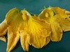 1546 x self about 16' to 17' this cooler cloudy morning. hope she takes cuz the one at 12'-13'didnt. that day in high winds and severe rain the zip tie slipped off thr female and petals open and she got flooded with water and already by next morning when petals were removed the lobes were in very bad shape. cleaning, captan, and fan didnt help. the other pollination that day on 679 is already laid down on day 4 and still shiney. its lobes were fine the following morning when petals were removed. 7 day old set is still growing nicely at 11.5' on the 1092. selfed the 1092 this morning at 17' this morning also. pollinated the 16' to 17' footer yesterday on the 679 again with the 1546. thats a cross i will grow next year if all goes well. got some megablooms set on 5 of 7 giant tomatoes. the 6.57 has one real nice double i decided to call the keeper and pulling off all new females. the other 4 are megabooms but too small to determine if the keepers. 3" off rain in 2 hours yesterday had me out there with a squirt bottle cleaning mud caked secondary cluster tips. plants look fine today.