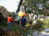 funny lifting pic with neighbors on all sides which lawn chairs watching the show.....very fun day