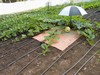 I have all of my fences up and opened the door on the Aluminet to try and show the plants the best I can. It seems like the Aluminet is preventing an early aphid infestation (in addition to the release of green lacewings and spraying of Garlic Barrier) and the electric fence is keeping out the squirrels that ruined my season last year. Also, I am starting to get a few Squash Vine Borers (SVB) in my pheromone traps so they are in the area and active.