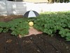Bird bath shapes collect and hold water that can be a pain to continually remove. So, why not just let the water stay and add some fish for some fun! However, growers felt they needed to add the �No Fishing Sign�, not sure if it was intended for me, but I did respect the local rules and regulations;-)