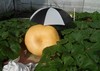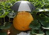The pumpkin in the picture (my 2145 McMullen �15) is inside of a 5-gallon paint strainer bag which I use on all of my pumpkins to protect them from any potential bird, chipmunk, squirrel, or �other varmint� damage. I like these bags because they breathe so the pumpkins do not get to hot and also allow me to visually inspect the pumpkins and move them as they grow. The material is similar to insect netting so it also keeps bugs off the small maturing pumpkins. I put these on the day after (or so) I spray them with Anthesis.