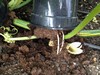 As it looks like I might be potting up the onions into their final pots in the next few weeks I sacrificed this one to see what is going on in the soil.