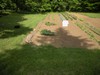 My son Abel's plant, a 525 Wolf. This one went in the garden on June 14th. I had planted the seed back in early April in a 1 gallon pot. I kept trimming it back, to keep it small. It was definitely pot bound! There is a small fruit on the main vine that has a big scar on it because my son hit it with the hoe when hoeing it. This patch receives a lot of shade, but Abel is still hoping he can grow a nice looking pumpkin around 500 pounds or so.