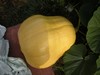 1578 Holub squash. This squash was planted right next to the 1245 Berard. On this one the plant and squash stopped growing in early to mid July. I am not sure why. The tips were stunted and they wilted badly everyday. (sort of resembling YVD.) Yet, It definitely wasn't YVD, It is a mystery to me. It did have a decent pumpkin on a secondary vine that was probably bigger than this one when it was culled. This one is taping about 150 pounds. Once again sorry no patch picture. You couldn't even see any squash leaves in that jungle of weeds.