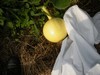 154 Sweet on a bushel gourd rootstock. This one is growing over hay and has no voles yet. It is a really fast grower, unfortunately it is growing on it's stem and the stem has split in two. I will just leave it and see how it does. I like how the later set plants perform for me. I seem to have less problems all the way around. Fast growing plants resist disease and insects so much better. The problem is I get so excited and impatient that I can't wait to start my seeds in the spring.