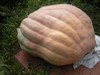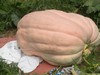 1245 Berard stem end. It has a nice glossy pink skin. No canteloping. Not a bad looking pumpkin. If I had done some early season adjusting to lift the blossom end, it may have resembled the 1067 Kent I grew last year. Which was quite a beauty, even though it was pink and not orange.
