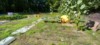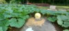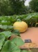 The 839 Sandercock pumpkin at day 10. About bowling ball sized. Very nice plant behind the fruit, except for a woodchuck eating the main 3 foot past this pumpkin. We will make it work to fill in the plot.