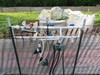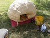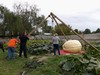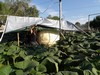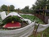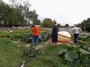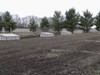 Yesterday we had dime sized hail and very high wind, tornado warning about 40 miles NE of us, and were out of power for about 4 hours. We had the hail net deployed and it did it's job. The wind broke one of our apple trees off at the base (5 inch trunk), blew another one over (7 inch trunk) and snapped one of the high tension guy wires on the hail net. We spent an hour on damage control reinforcing hail net and making sure the rest of the night the plants were safe. Today, we put the hail net away (pictured) and prepared for the cold night ahead.