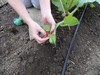 sprinkle azos and mycorrhizae on the exposed roots and in the plant hole. place the plant with the first true leave pointing at you, and lay the plant at a 45 degree angle away from you. Then cover. We don't bury them all the way anymore. Seems to help them lay down easier.