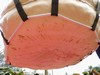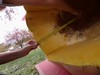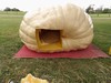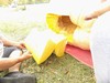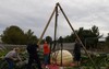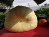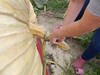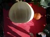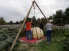 Used one of Lee's lifting rings. Notice that the straps are long enough so that they don't squeeze the pumpkin which will at the very least bruise it.