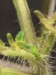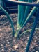 It is really hard to get a picture of what I am seeing. This plant has one big ribbon blossom coming out. The point of the pen shows where the flower starts. I am thinking this blossom is going to be difficult to get set. Leaf and vine growth is very deformed.