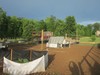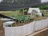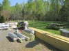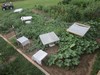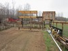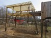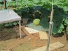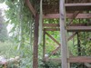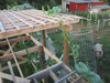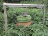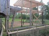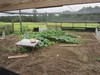This time of year work slows for me and last week I prepared most of my LG setup. I loaded up the three foot high raised bed on the south side with everything but the kitchen sink including my hog manure compost and store bought Black Kow compost. I made a catwalk to be able to get to the plants by extending the water tower floor. I'm hoping it won't get in the way or break some gourds on windy days late in the season. I will try to adjust the vines to have the gourds hang in the large openings.