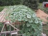 The Long Gourds are filling the trellis up. Thats one of my tallest sunflowers beside Lacey Jane