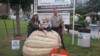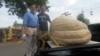 Can anyone identify this guy looking in my tunnel and trying to look at my pumpkin. He said he was lost and gave me some wild story about wanting to sell me a vacuum cleaner. I was able to interrogate him and found out he was from Des Moines. Said his name was Don Young. All kidding aside Don and Julie delivered an order I had. Don and Julie have been very helpful the last couple years in teaching me some things on these AG ' S. Thanks Don and Julie.