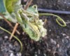 Looking closer at the growing tip of the main vine you can see the small female bud but it hasn't really changed or grown in the past few days. Where there should be lush green growth is desiccation and poor colour. It's been very hot and dry for ages and many (but not all) ends of the secondaries are showing similar signs of distress. The main body of the plant is OK, it's just the growing tips on the youngest vines that are suffering. So I might need to think twice about pollinating this one, and perhaps use a side vine instead. But which one?