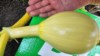 The soil of the ramp was almost up to the stem and the lower portion of the pumpkin was covered with soil. Five inches of soil was removed from the ramp to expose the pumpkin.