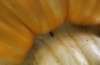 Yesterday I decided to lengthen the slit by about 1/2". The fine line past the crack is the new cut. It's definitely widening as the pumpkin is growing.