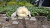 Fall rye seeds are sown and then covered with ReMay. This helps in keeping the patch from being a giant bird feeder and helps germinate the seeds a bit faster. You can see that the grass lifts the ReMay as it grows. Bricks are used at the edges to hold the cloth down as it is so light that slight winds will blow the ReMay off.