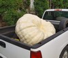We took the 1935 Ford to the landfill today. We weighed the truck on the truck scale with and without the pumpkin in the back and it was a difference of 510 kg / 1125 lbs so I guess that's the weight I'll use. It probably lost some weight being split open for 5 days in the heat we've been having but whatever.
