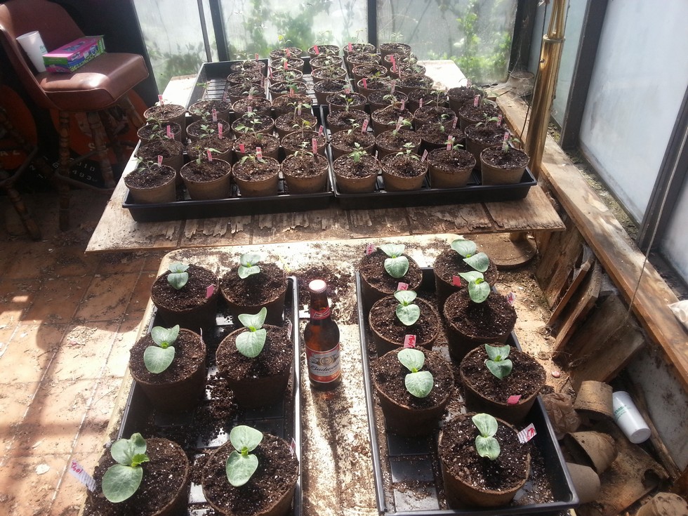 2014 pumpkin line up left tray. 2 up front both 1092 Naylor 2011 (991 Urena x 1725 Harp), 1546 Shenoha 2013 (1421.5 Stents x 1381 Checkon) are the 2 in the middle with the Budweiser next to the go getter of the bunch...lol...and the 679 Janowiak 2013 are the 2 in the back row. 2 of each will go side by side winner gets a spot. the right tray are backups of same crosses.