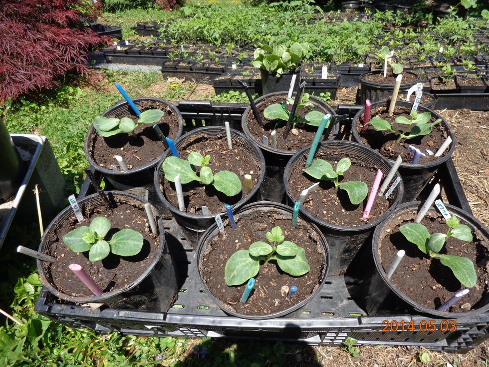 Sorry, one of the plants in the last picture was wrong. It has now been replaced with a plant with 2 sets of cots, LOL. These youngsters are loving the full sun by the way. They slept under grow lights last night. I may wait about a week or so to plant them to take advantage of the extra night lighting so they may get a little extra growth on them.