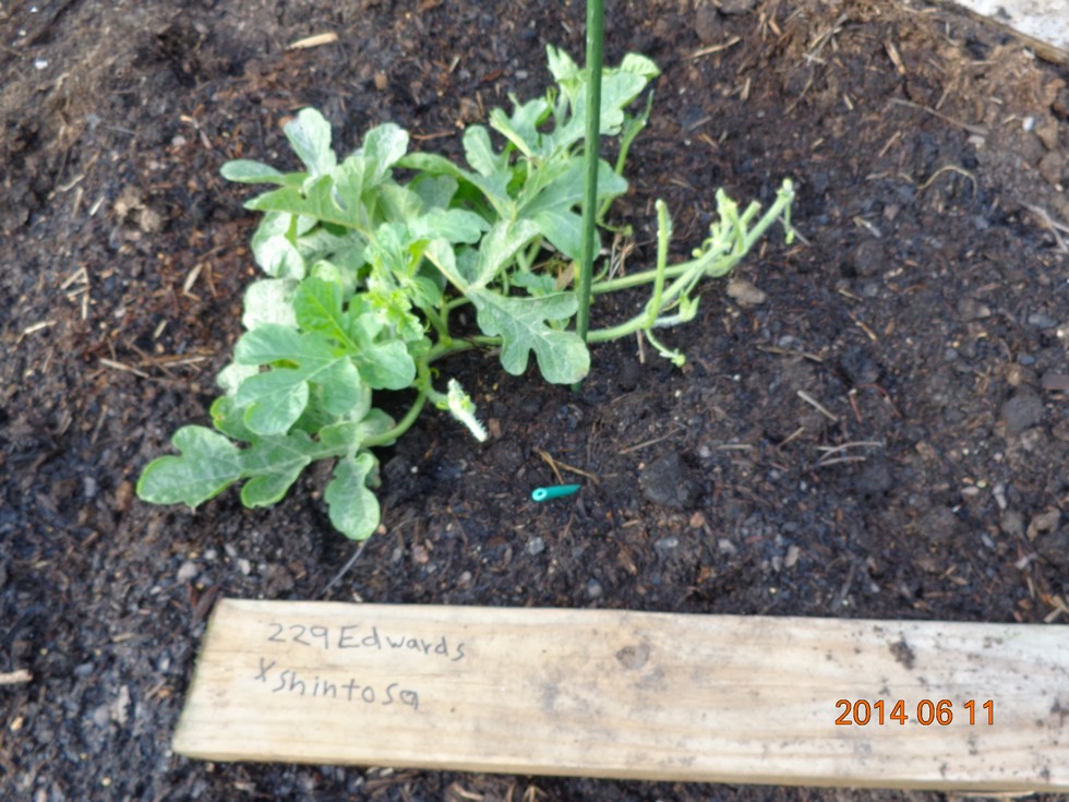 Here is a much chewed on 229 Edwards x Shintosa that I also moved to my new raised bed. I moved it this evening. I don't think the woodchuck will travel into my front yard as they are said to not venture far from their burrow.