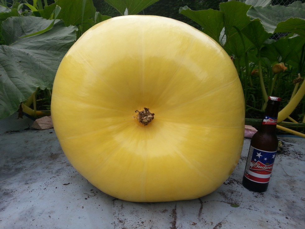 Bertha with blossom end sinking and wheel like shape forming. small dry growth split where stem connective tissue meets pumpkin freaked me out until it healed so i havent been able to work it back a little away from stem end like i like to do while getting pumpkin on 90 to main. that means i will have to cut more taps on main and raise the main as she grows.